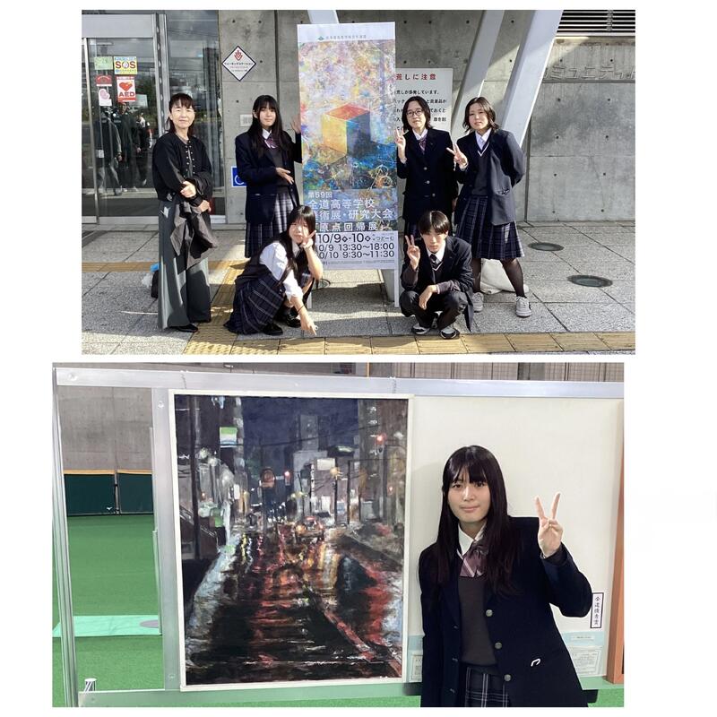 石狩支部大会で入選した新傳柚葉さん(3年)は作品を出品し、たくさんの他校生徒や先生から講評を受け、今後の制作活動に向け大きな収穫となったようです。支部大会で佳作となり今回参加した他の4名の生徒も、全道から選出された多くの作品に触れ、刺激を受けた有益な大会となりました。