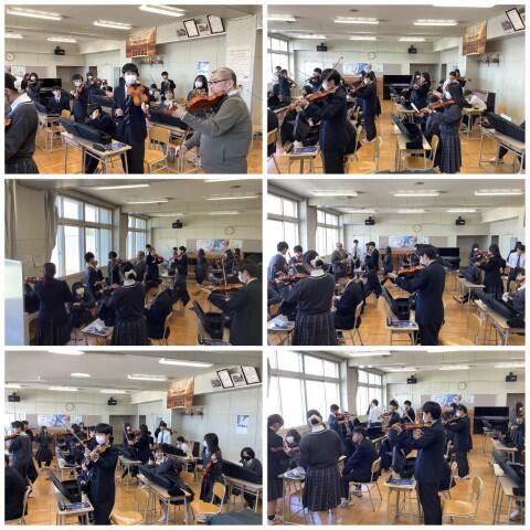 全国でも珍しい取り組み!あすかぜ高校3年生の選択音楽Ⅲでは、バイオリンの授業を実施しています。教室いっぱいに響く弦の音色、真剣なまなざしで弓を動かす生徒たち。音楽の楽しさを全身で感じながら、仲間と奏でる喜びを体験しています。個性豊かな演奏が、新しい学びの可能性を広げています。